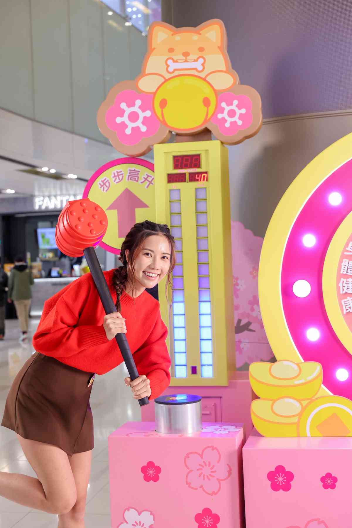 一鎚打響事業運!參加者可舉起鎚子打落按鈕,只要超過指定分數,即代表步步高陞、突破自我,寓意新一年事業起飛、更上一層樓!