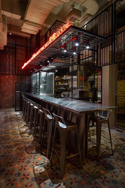 筆者不時於香港的舊區穿插,發現舊區有很多由人、物料和時間堆砌出的獨特街景。例如不同類型的鐵花欄河,現在已經少之有少,懂得做的也數指可數。我們發現鐵花的可塑 性很高,決定將它成為餐廳設計的靈魂。因此,我們邀請了本地絕無僅有的鐵匠為餐廳製造鐵花,我們希望以鐵花構造成一個藝術裝置,懸掛於餐廳中心,將獨特的舊街景延伸入餐廳之內 。