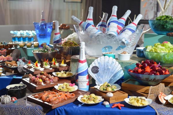 美食美酒從來是絕配。餐廳便為這個Brunch找來完美組搭──Chandon Brut。來自澳洲的Chandon每年不例外地推出夏季限定版氣泡酒,每年的就是以白藍紅為主色,海洋條紋的瓶身設計洋溢濃濃夏日氣息。愛酒之人,可選任飲 Chandon Brut 香檳套餐,亦記得一嚐餐廳特別以Chandon Brut調製的特式夏日雞尾酒,輕呷一口,即教人令人暑氣全消。細心環視餐廳一周,你更會看到一系列由藝術家 Jennifer Chung 特別設計的作品,以及充滿海岸特色的室內擺設,讓眼球和舌尖帶來宛如置身海洋世界的清新感。
